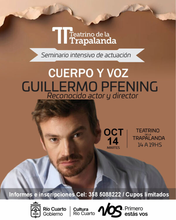 Se realiza el Seminario intensivo de actuación Cuerpo y voz, a cargo del reconocido actor y director cordobés Guillermo Pfening. Con orientación audiovisual.