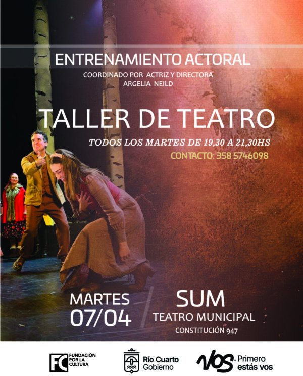 Martes 7 de abril. SUM del Teatro Municipal (Constitución 945). 19.30hs. Informes e inscripción al 3585746098