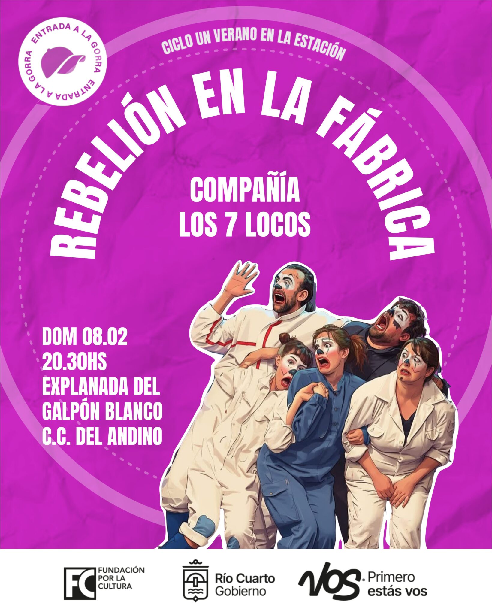 DOMINGO 08 DE FEBRERO. 20.30hs. Explanada del Galpón Blanco C.C Andino. Entrada a la gorra.